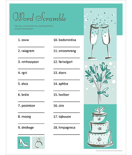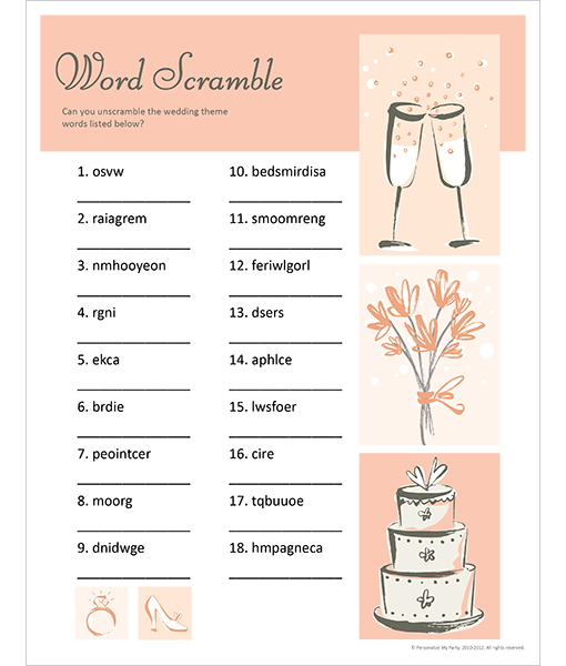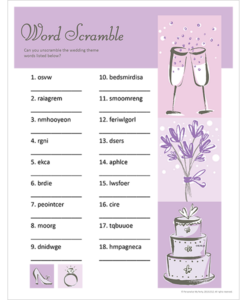Have some fun rearranging wedding related words one on one or in teams.
